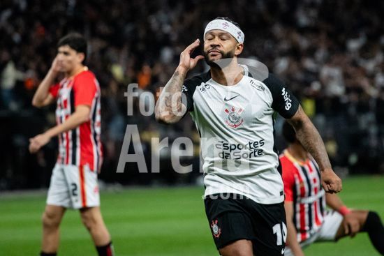 2845853 Memphis comemora gol durante a partida entre Corinthians e São Paulo, válida pela 34ª rodada do Brasileirão e realizada na noite desta quinta-feira (20) na Neo Química Arena, em São Paulo, SP.