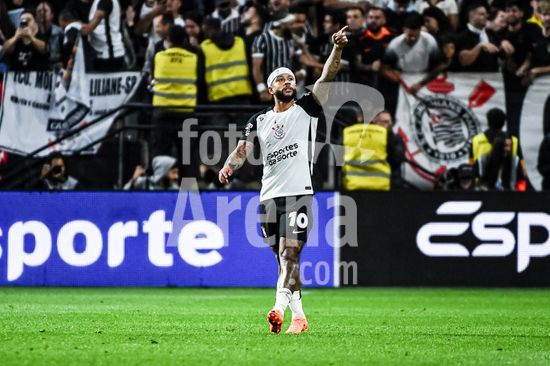 2845852 Memphis comemora gol durante a partida entre Corinthians e São Paulo, válida pela 34ª rodada do Brasileirão e realizada na noite desta quinta-feira (20) na Neo Química Arena, em São Paulo, SP.