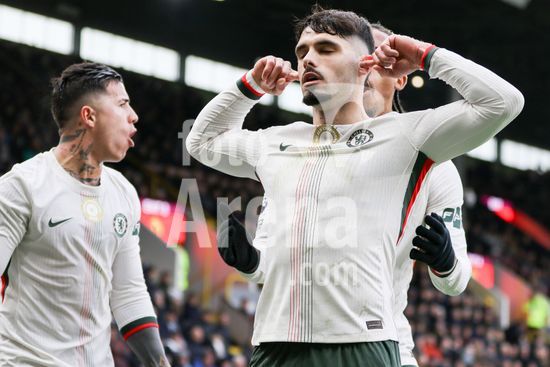 2846371 Pedro Neto (7 Chelsea) comemora seu gol durante a partida da Premier League entre Burnley e Chelsea no Turf Moor em Burnley, Inglaterra, em 22 de novembro de 2025. (Sean Chandler / SPP)