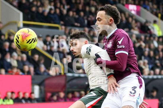 2846374 Quilindschy Hartman (3 Burnley) controla a bola durante a partida da Premier League entre Burnley e Chelsea em Turf Moor em Burnley, Inglaterra, em 22 de novembro de 2025. (Sean Chandler / SPP)
