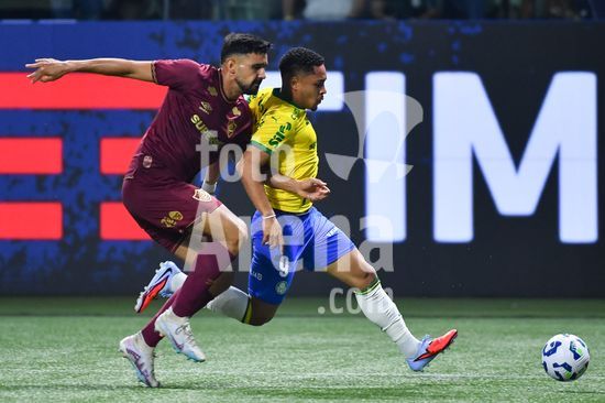 2846808 Joaquín Piquerez do Palmeiras (Direita) durante partida entre Palmeiras x Fluminense, válida pela trigésima quinta rodada do Campeonato Brasileiro de Futebol 2025, neste sábado (22), no Allianz Parque, SP.