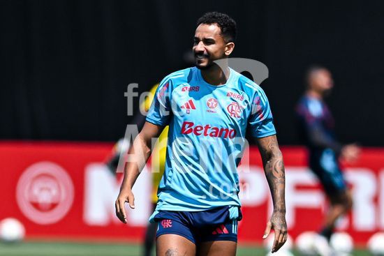 2849754 Everton Cebolinha durante treino do Flamengo, na preparação para a Final da CONMEBOL Libertadores 2025, realizado no complexo VIDENA, localizado na cidade de Lima, Peru, na manhã desta sexta-feira (28).