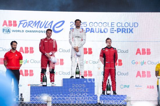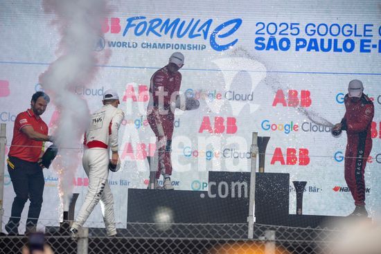 2854864 Oliver Rowland, Jake Dennis e Nick Cassidy durante o pódio do E-Prix de São Paulo, disputado no dia 06 de dezembro de 2025, no circuito do Anhembi em São Paulo.