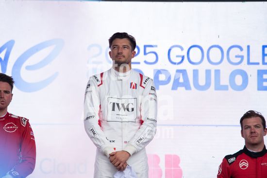 2854867 Jake Dennis durante o pódio do E-Prix de São Paulo, disputado no dia 06 de dezembro de 2025, no circuito do Anhembi em São Paulo.