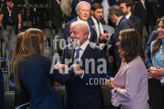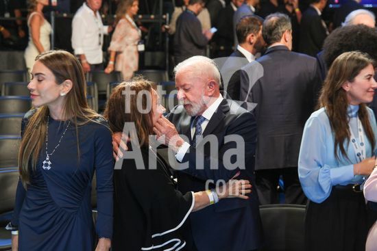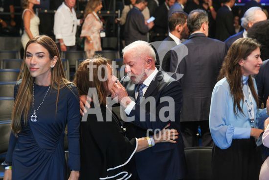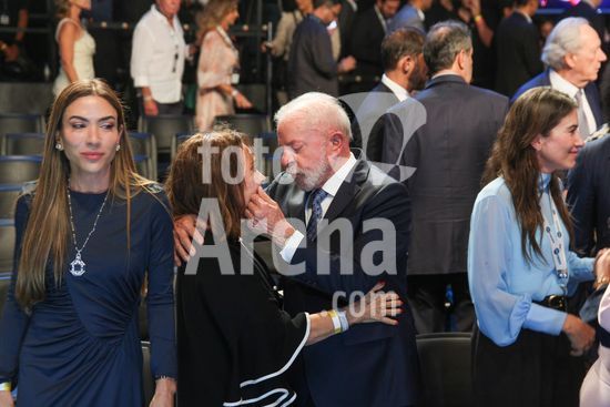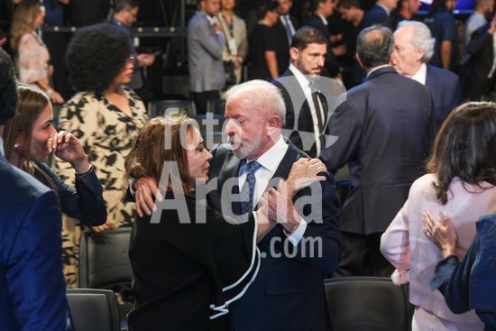 2858413 O SBT reuniu, nesta sexta-feira (12), autoridades, empresários e personalidades em um evento que marca o início das operações do SBT News, o novo canal de notícias do grupo. A celebração aconteceu nos estúdios da TV, na Anhanguera, em Osasco, com presença do presidente Lula do Governador de São Paulo Tarcisio de Freitas e do Prefeito Ricardo Nunes.Na foto o presidente Lula troca carinhos com a esposa de Silvio Santos Iris Abravanel.