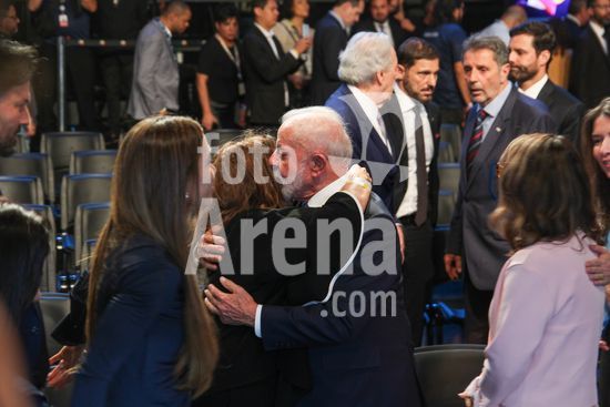 2858421 O SBT reuniu, nesta sexta-feira (12), autoridades, empresários e personalidades em um evento que marca o início das operações do SBT News, o novo canal de notícias do grupo. A celebração aconteceu nos estúdios da TV, na Anhanguera, em Osasco, com presença do presidente Lula do Governador de São Paulo Tarcisio de Freitas e do Prefeito Ricardo Nunes.Na foto o presidente Lula troca carinhos com a esposa de Silvio Santos Iris Abravanel.