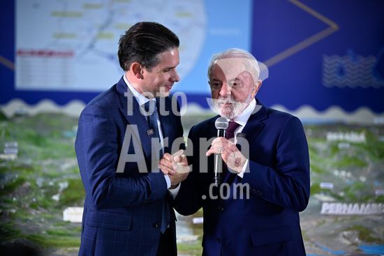 2860481 Foto, Presidente Lula e Hugo Motta, Presidente da Câmara dos Deputados. Nesta quinta (18) o Presidente Lula inaugura a maquete da transposição do Rio São Francisco. A inauguração teve a participação de Hugo Motta, Presidente da Câmara dos Deputados.