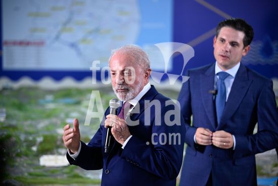 2860479 Foto, Presidente Lula durante inauguração. Nesta quinta (18) o Presidente Lula inaugura a maquete da transposição do Rio São Francisco. A inauguração teve a participação de Hugo Motta, Presidente da Câmara dos Deputados.