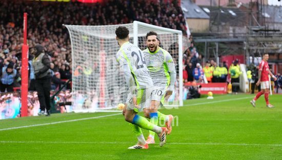 2863270 Rayan Cherki, do Manchester City, comemora seu gol aos 83 minutos, que garantiu o placar de 1 a 2 durante a partida da Premier League entre Nottingham Forest e Manchester City, no City Ground, em Nottingham. (Paul Bonser/Sports Press Photo / SPP)