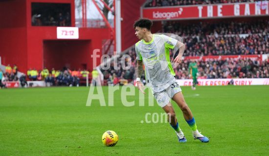 2863287 Nico O'Reilly, do Manchester City, em acao durante a partida de futebol da Premier League entre Nottingham Forest e Manchester City no City Ground, em Nottingham. (Paul Bonser/Sports Press Photo / SPP)