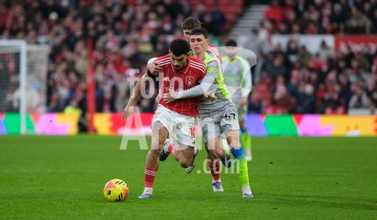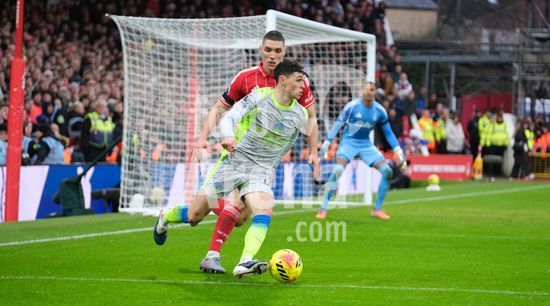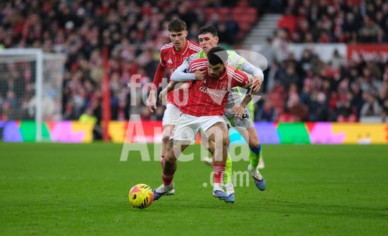 2863319 Omari Hutchinson, do Nottingham Forest, sob pressao de Nico O'Reilly, do Manchester City, durante a partida da Premier League entre Nottingham Forest e Manchester City, no City Ground, em Nottingham. (Paul Bonser/Sports Press Photo / SPP)