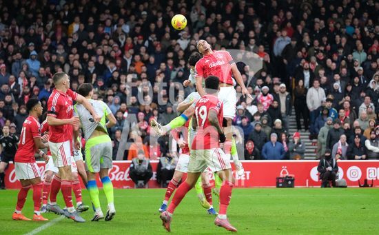 2863309 Murillo, do Nottingham Forest, afasta a bola durante a partida de futebol da Premier League entre Nottingham Forest e Manchester City, no City Ground, em Nottingham. (Paul Bonser/Sports Press Photo / SPP)