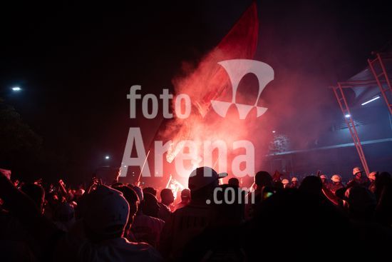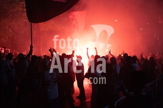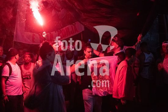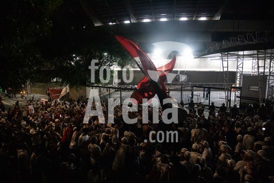 2869061 O conselho deliberativo pelo impeachment de Julio Casares, presidente do São Paulo Futebol Clube, acontece na noite desta sexta-feira (16) no MorumBIS, em São Paulo, SP. As torcidas organizadas do clube convocaram um protesto nos arredores do estádio pelos escândalos nos bastidores e o desempenho recente da equipe. Na foto, torcida comemora o impeachment de Julio Casares.