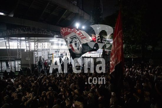 2869054 O conselho deliberativo pelo impeachment de Julio Casares, presidente do São Paulo Futebol Clube, acontece na noite desta sexta-feira (16) no MorumBIS, em São Paulo, SP. As torcidas organizadas do clube convocaram um protesto nos arredores do estádio pelos escândalos nos bastidores e o desempenho recente da equipe. Na foto, torcida comemora o impeachment de Julio Casares.