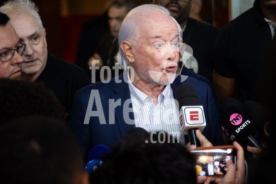 2869062 O conselho deliberativo pelo impeachment de Julio Casares, presidente do São Paulo Futebol Clube, acontece na noite desta sexta-feira (16) no MorumBIS, em São Paulo, SP. As torcidas organizadas do clube convocaram um protesto nos arredores do estádio pelos escândalos nos bastidores e o desempenho recente da equipe. na foto, Harry Massis Junior, vice de Casares que assume a presidência dá entrevista coletiva.
