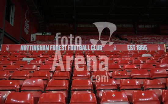 2876093 Assentos na arquibancada Peter Taylor antes do inicio da partida de futebol da Liga Europa da UEFA entre Nottingham Forest e Ferencvaros TC no City Ground em Nottingham. (Paul Bonser/Sports Press Photo / SPP)