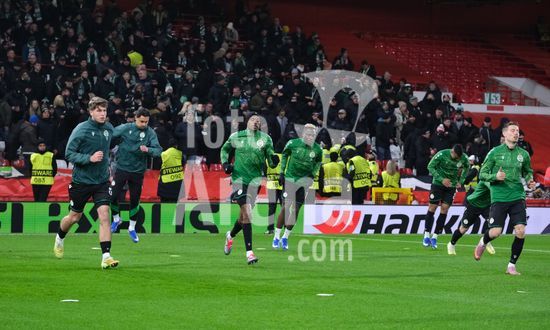 2876097 Jogadores do Ferencvaros TC durante o aquecimento pre-jogo na partida da Liga Europa da UEFA entre Nottingham Forest e Ferencvaros TC, no City Ground, em Nottingham. (Paul Bonser/Sports Press Photo / SPP)
