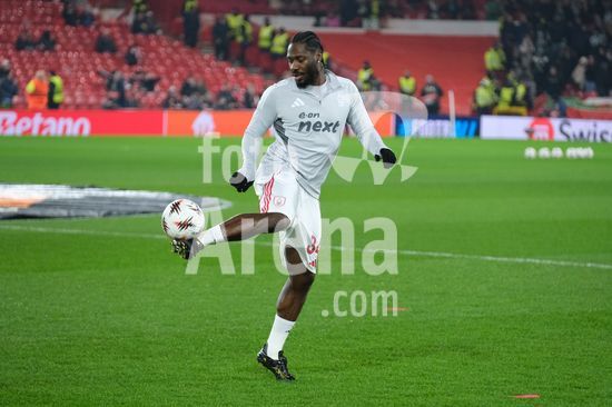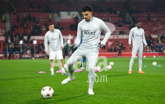 2876114 Dilane Bakwa, do Nottingham Forest, durante o aquecimento pre-jogo na partida de futebol da Liga Europa da UEFA entre Nottingham Forest e Ferencvaros TC, no City Ground, em Nottingham. (Paul Bonser/Sports Press Photo / SPP)