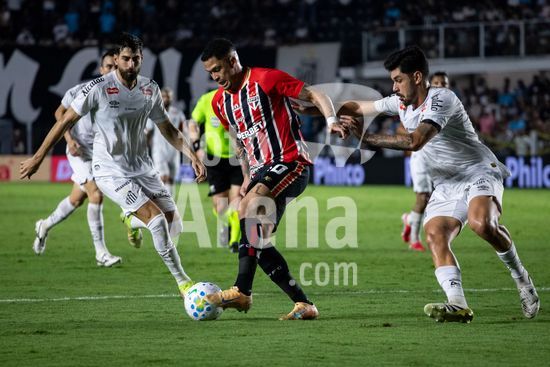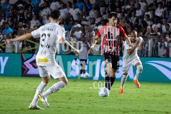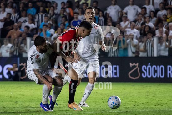 2879430 Alan Franco durante a partida entre Santos e São Paulo, válida pela 2ª rodada do Brasileirão, realizada na noite desta quarta-feira (04) no Estádio Urbano Caldeira, a Vila Belmiro em Santos, SP.