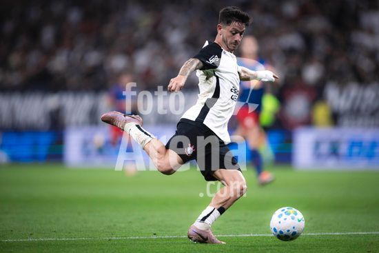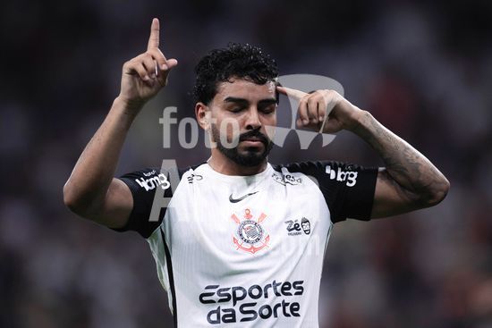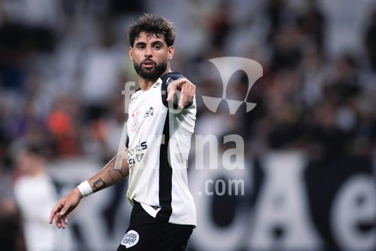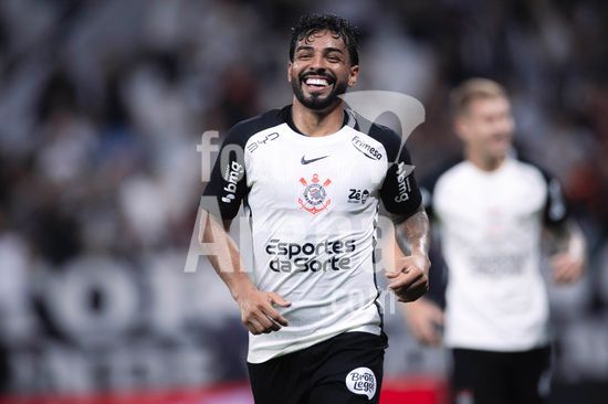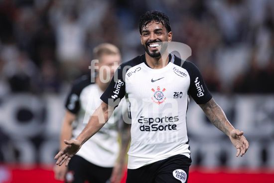 2883045 Raniele e Gustavo Henrique (Corinthians) em jogada aérea durante a partida entre Corinthians e Red Bull Bragantino, válida pela 3ª rodada do Brasileirão, realizada na noite desta quainta-feira (12) na Neo Química Arena em São Paulo, SP.