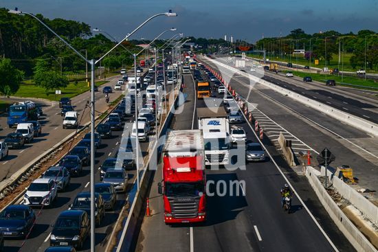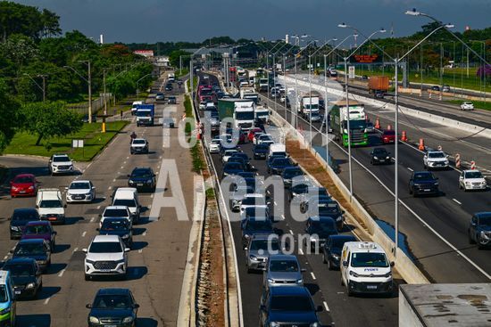2883240 Vista do movimento na Via Dutra BR 116 que corta a cidade , a rodovia que esta em obras de alargamento das marginais deixa o transito caotico na cidade , no feriado de carnaval devem passar pela rodovia cerca de 600 mil veiculos com diversos destinos .