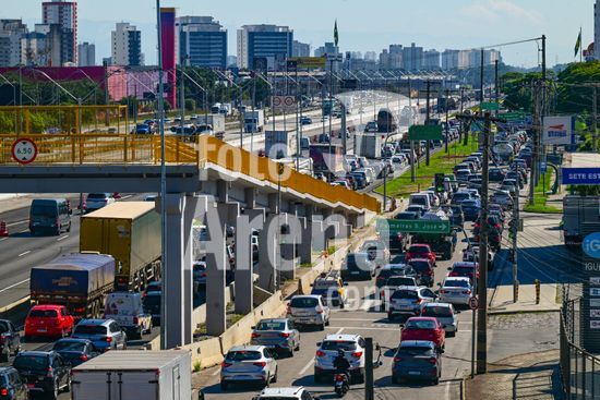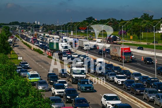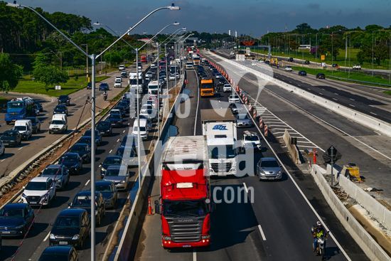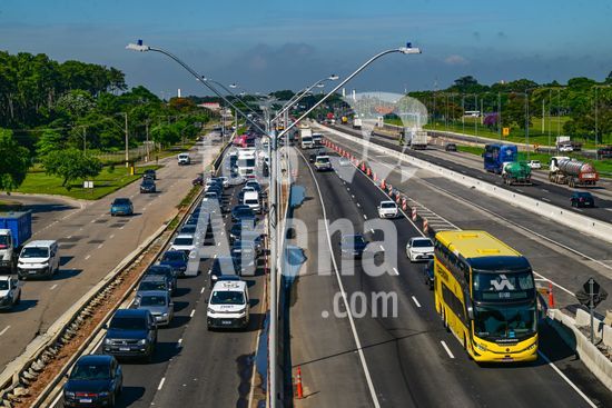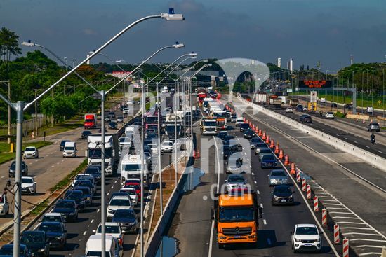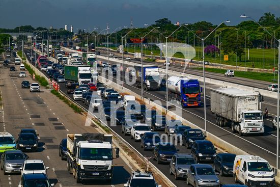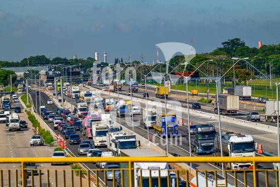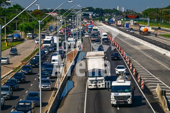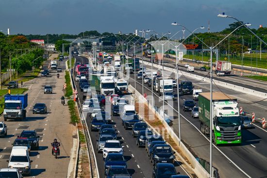 2883238 Vista do movimento na Via Dutra BR 116 que corta a cidade , a rodovia que esta em obras de alargamento das marginais deixa o transito caotico na cidade , no feriado de carnaval devem passar pela rodovia cerca de 600 mil veiculos com diversos destinos .