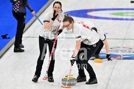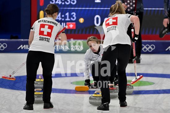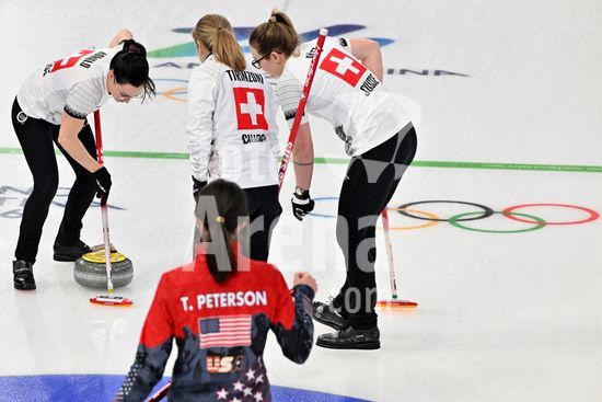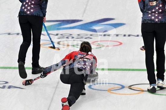 2891547 Cortina d'Ampezzo, Italia, 20 de fevereiro de 2026. Durante a partida semifinal feminina de curling entre Estados Unidos da America e Suica nos Jogos Olimpicos de Inverno de 2026 em Cortina d'Ampezzo, Italia. (Foto de Igor Kupljenik/Sports Press Photo) (Igor Kupljenik / SPP)