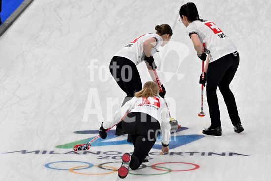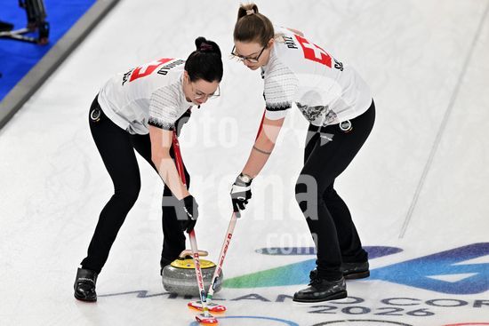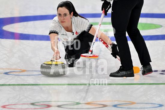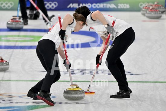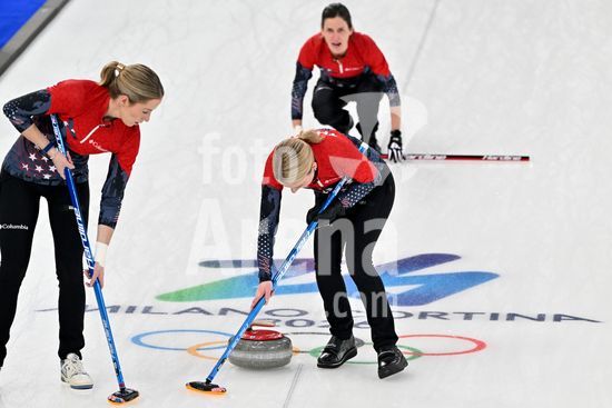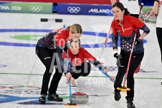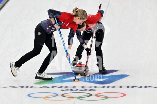 2891526 Cortina d'Ampezzo, Italia, 20 de fevereiro de 2026. Durante a partida semifinal feminina de curling entre Estados Unidos da America e Suica nos Jogos Olimpicos de Inverno de 2026 em Cortina d'Ampezzo, Italia. (Foto de Igor Kupljenik/Sports Press Photo) (Igor Kupljenik / SPP)