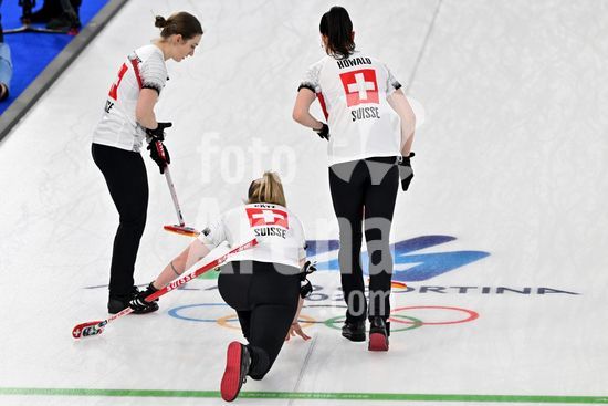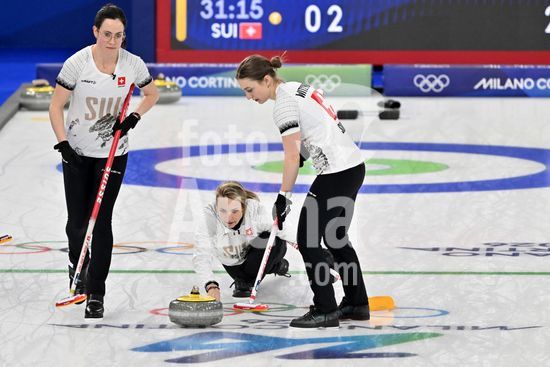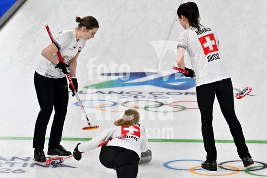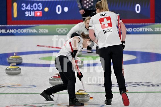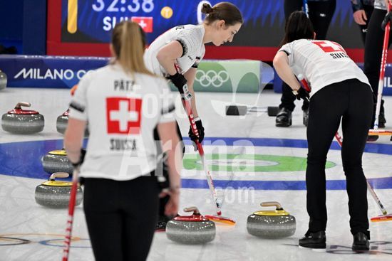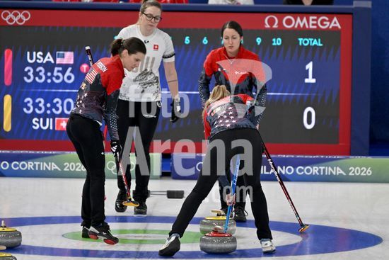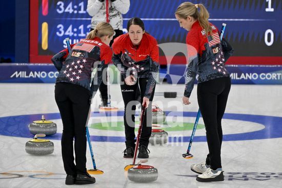 2891550 Cortina d'Ampezzo, Italia, 20 de fevereiro de 2026. Durante a partida semifinal feminina de curling entre Estados Unidos da America e Suica nos Jogos Olimpicos de Inverno de 2026 em Cortina d'Ampezzo, Italia. (Foto de Igor Kupljenik/Sports Press Photo) (Igor Kupljenik / SPP)