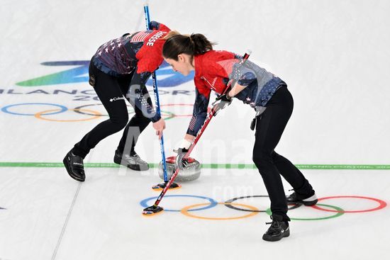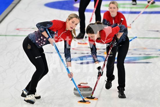 2891529 Cortina d'Ampezzo, Italia, 20 de fevereiro de 2026. Durante a partida semifinal feminina de curling entre Estados Unidos da America e Suica nos Jogos Olimpicos de Inverno de 2026 em Cortina d'Ampezzo, Italia. (Foto de Igor Kupljenik/Sports Press Photo) (Igor Kupljenik / SPP)