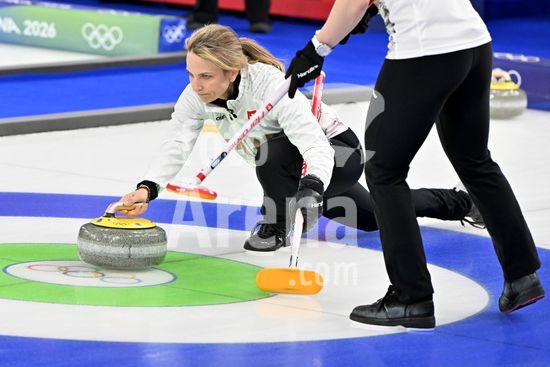2891524 Cortina d'Ampezzo, Italia, 20 de fevereiro de 2026. Durante a partida semifinal feminina de curling entre Estados Unidos da America e Suica nos Jogos Olimpicos de Inverno de 2026 em Cortina d'Ampezzo, Italia. (Foto de Igor Kupljenik/Sports Press Photo) (Igor Kupljenik / SPP)