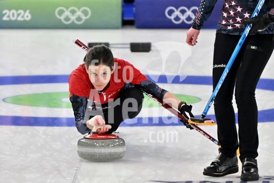 2891528 Cortina d'Ampezzo, Italia, 20 de fevereiro de 2026. Durante a partida semifinal feminina de curling entre Estados Unidos da America e Suica nos Jogos Olimpicos de Inverno de 2026 em Cortina d'Ampezzo, Italia. (Foto de Igor Kupljenik/Sports Press Photo) (Igor Kupljenik / SPP)