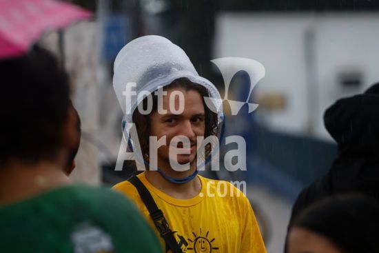 2893793 Governo Federal revoga Decreto 12.600 após reunião com lideranças indígenas em Brasília. Ato em defesa dos Rios em frente à sede da Superintendência do DNIT no Pará. Sob chuva integrantes da sociedade civil, indígenas, estudantes e entidades de direitos humanos comemoram a revogação do decreto 12600 que dispõe sobre a inclusão de empreendimentos públicos federais do setor hidroviário no Programa Nacional de Desestatização.