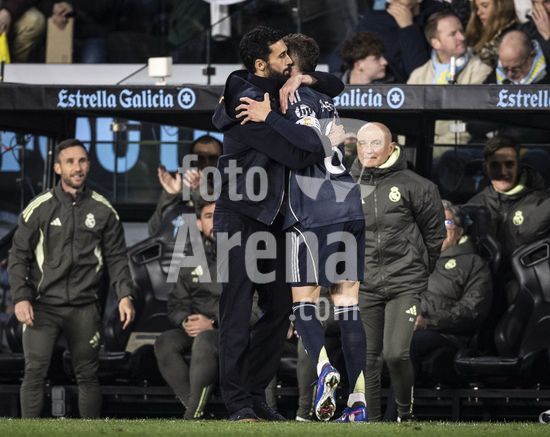 2899692 VIGO, ESPANHA - 6 DE MARCO: Alvaro Arbeloa, tecnico do Real Madrid, parabeniza Federico Valverde do Real Madrid apos seu gol da vitoria durante uma partida da LaLiga EA Sports entre Celta Vigo e Real Madrid no Estadio de Balaidos em 6 de marco de 2026 em Vigo, Espanha. (Ricardo Nogueira/SPP)