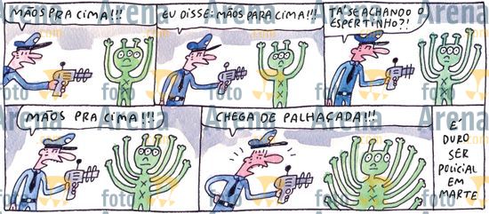 aivari09066 ADÃO ITURRUSGARAI, VARIEDADES, FOLHINHA, 2009.DiálogoO ilusionista.- Oi, amiguinhos. Vou dar um pulo na lua! É só usar a imaginação! A Terra é azul! Rumo à Marte! E agora? Como voltar? Acabou a imaginação!