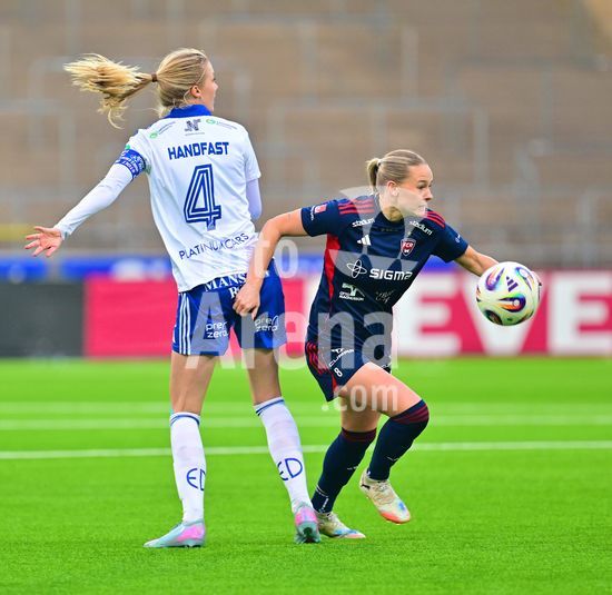 2827041 Emma Jansson (8 FC Rosengard) e Ebba Handfast (4 IFK Norrkoping) no jogo da Liga Sueca OBOS Damallsvenskan em 19 de outubro de 2025 entre IFK Norrkoping e FC Rosengard na Platinumcars Arena em Norrkoping, Suecia (Peter Sonander/SPP)