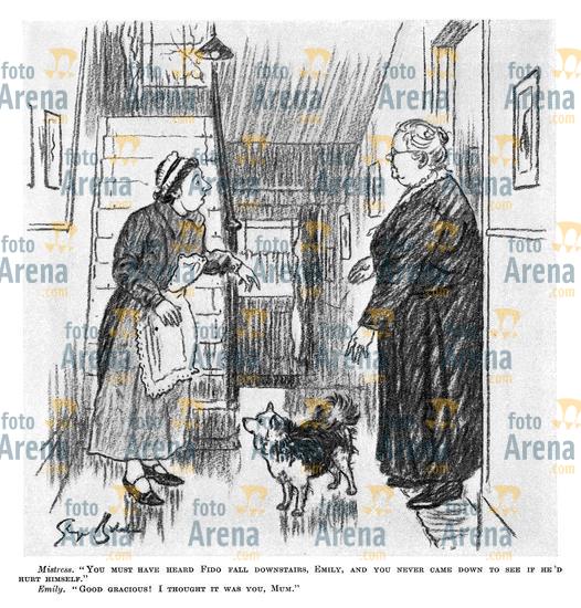 PCL111094 "Mistress. ""You must have heard Fido fall downstairs, Emily, and you never came down to see if he'd hurt himself."" Emily. ""Good gracious! I thought it was you, mum.""" *** Local Caption *** Punch cartoons by George Belcher