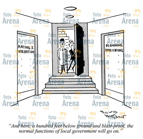 PCL113335 "And here, a hundred feet below ground and blast-proof, the normal functions of local government will go on." *** Local Caption *** David Langdon Cartoons from Punch magazine