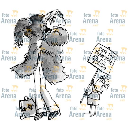 PCL114648 "(Man wearing animal fur and boy protesting about teddy bear slaughter with placard stating: ""Save the Teddy Bear. Stop this Senseless Slaughter)" *** Local Caption *** Punch cartoons by Quentin Blake