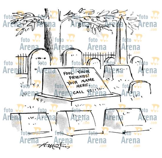 PCL114786 "(A grave stone with the sign ""Fool your friends! Your name here"" written on it)" *** Local Caption *** Henry Martin cartoons from Punch magazine
