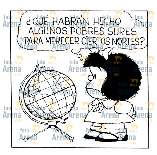 mi101sp ILUSTRAÇÃO DA MAFALDA, ESPANHOL, EDICIONES DE LA FLOR.DiálogoMafalda: ¿Qué habrán hecho algunos pobres sures para merecer ciertos nortes?