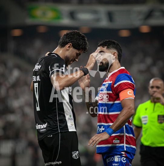 2837145 Pedro Raul (à esq.), do Ceará - Partida entre Ceará e Fortaleza, válida pela 32ª rodada do Campeonato Brasileiro Série A 2025, realizada na Arena Castelão, em Fortaleza, capital cearense, na noite desta quinta-feira (6).