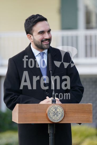2612J01_KH001 Zohran Mamdani at the press conference for New York City Mayor Zohran Mamdani First Press Conference from Gracie Mansion, Gracie Mansion, New York, NY, January 12, 2026. Photo By: Kristin Callahan/Everett Collection/ Fotoarena