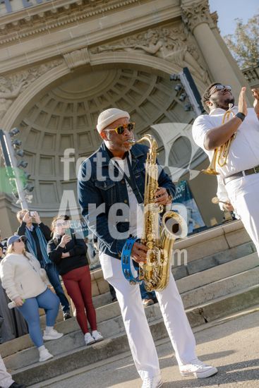 ny180126221013 MJ?s Brass Boppers play during Claude the alligator's funeral at Golden Gate Park in San Francisco, on Sunday, Jan. 18, 2026. The pink-eyed, 300-pound resident of the California Academy of Sciences died last month. On Sunday, thousands paid tribute. (Poppy Lynch/The New York Times/Fotoarena)