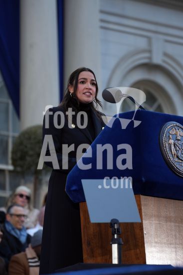 ny010126162012 Rep. Alexandria Ocasio-Cortez (D-N.Y.) speaks during the public inauguration ceremony for Mayor Zohran Mamdani at City Hall in New York on Thursday, Jan. 1, 2026. The public ceremony is taking place hours after Mamdani, the cityÕs first Muslim and South Asian mayor, was officially sworn in during a brief private event held shortly after midnight. (Hiroko Masuike/The New York Times/Fotoarena)