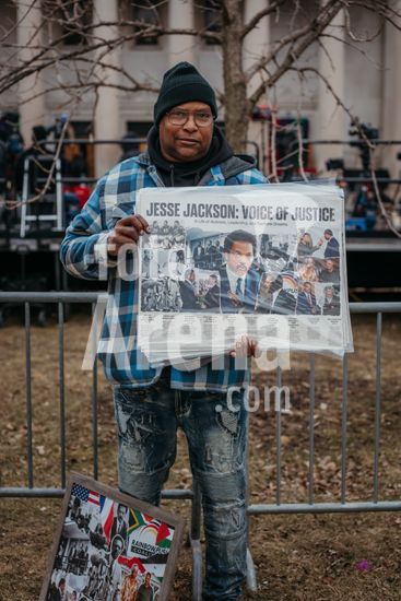 ny260226181711 A man selling posters outside the Rainbow PUSH Coalition national headquarters in Chicago, where the Rev. Jesse Jackson, the late civil rights leader, will lie in repose, on Thursday, Feb. 26, 2026. Jackson, who passed away on Feb. 17, counted ChicagoÕs South Side as his adopted hometown, and had close ties to the community. (Jamie Kelter Davis/The New York Times/Fotoarena)