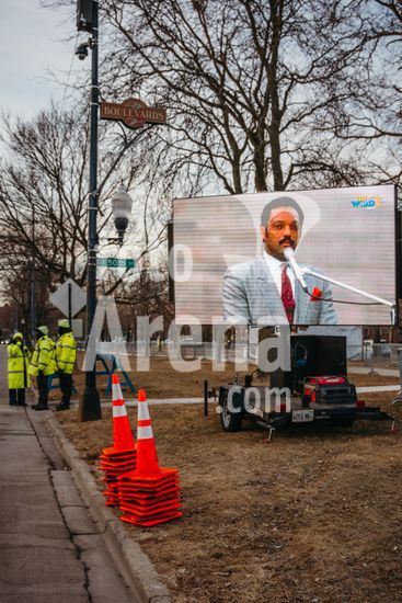 ny260226181714 A monitor plays footage of the Rev. Jesse JacksonÕs career in politics and civil rights outside the Rainbow PUSH Coalition national headquarters in Chicago, where he was to lie in repose, on Thursday, Feb. 26, 2026. Jackson, who passed away on Feb. 17, counted ChicagoÕs South Side as his adopted hometown, and had close ties to the community. (Jamie Kelter Davis/The New York Times/Fotoarena)