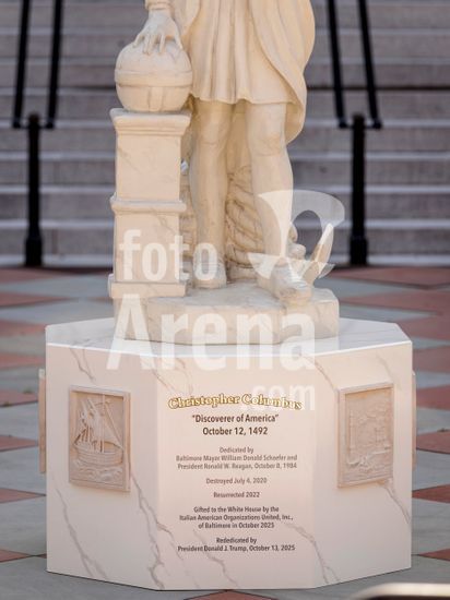 ny220326161612 The pedestal of a statue of Christopher Columbus in front of the Eisenhower Executive Office Building at the White House Complex in Washington after being installed early Sunday morning, March 22, 2026. A statue of Christopher Columbus was installed on the grounds of the White House early Sunday morning, as part of President Trump?s effort to position the explorer as a hero after monuments to him were removed across the country. (Jason Andrew/The New York Times/Fotoarena)