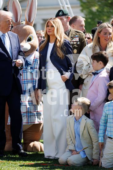 ny060426173911 President Donald Trump, left, stands with first lady Melania Trump during the White House Easter Egg Roll event on the South Lawn of the White House in Washington, on Monday, April 6, 2026. The first lady made a statement in Ralph Lauren at the annual event. (Tom Brenner/The New York Times/Fotoarena)