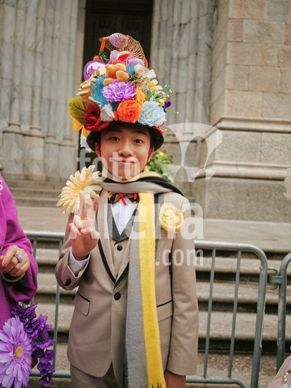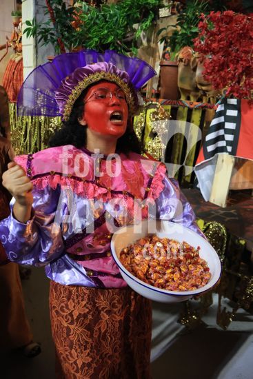 990_05_6-Exp-Happy_7HR United States: 1927 A woman with eyes crossed wearing elaborate clothing and jewelry. © Underwood Archives / The Image Works